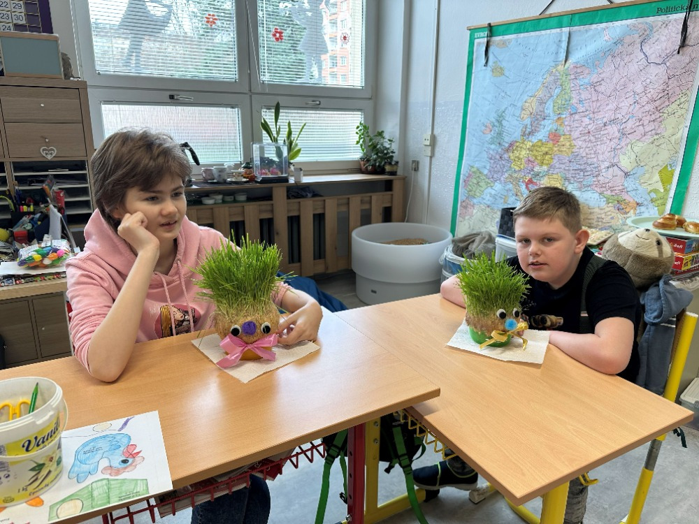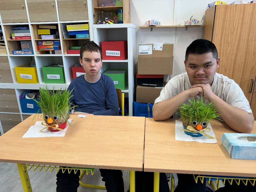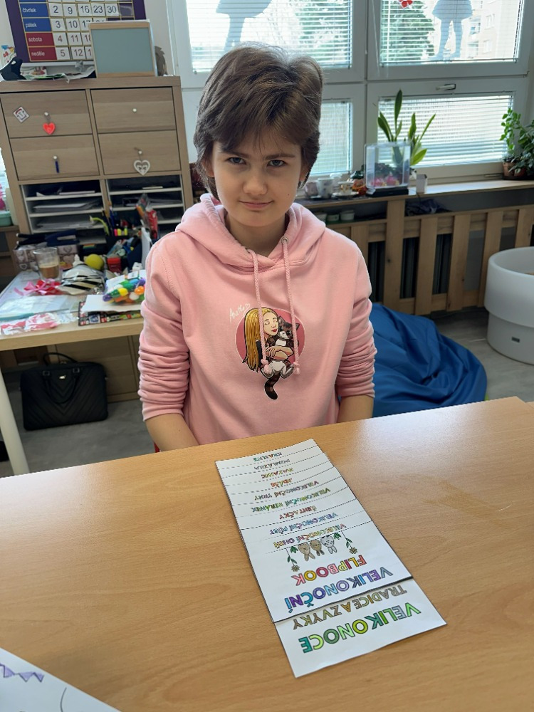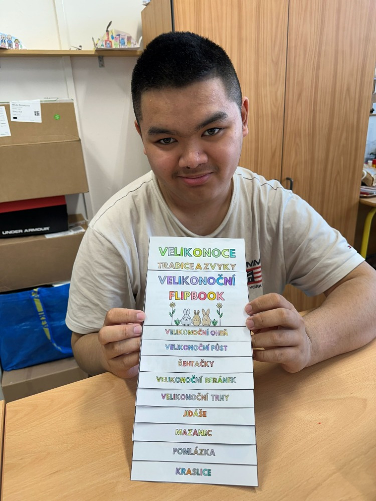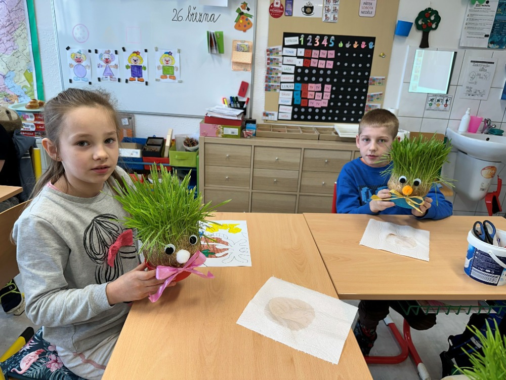 Velikonoční tvoření jsme si letos opravdu užili. Při tvorbě flipbooku jsme si připomněli velikonoční zvyky a tradice. Potom si děti s naší malou pomocí vyrobily veselé hlavičky z punčochy, kterým postupně vyrůstají „vlásky“ z osení. S nadšením také malovaly, vystřihovaly a skládaly barevné papírové slepičky. Na závěr jsme se pustili do pečení tradičních jidášů, které se všem moc povedly – a ještě lépe chutnaly. 😊