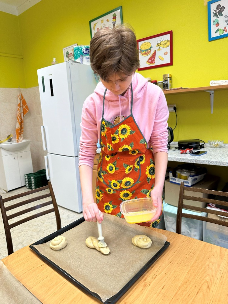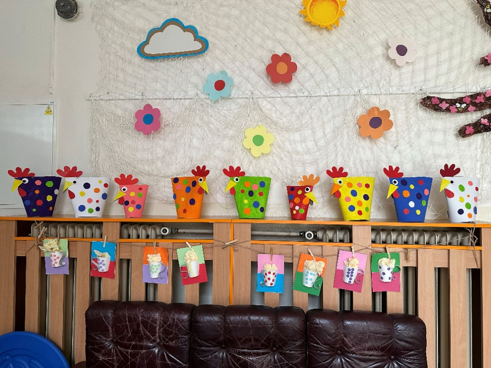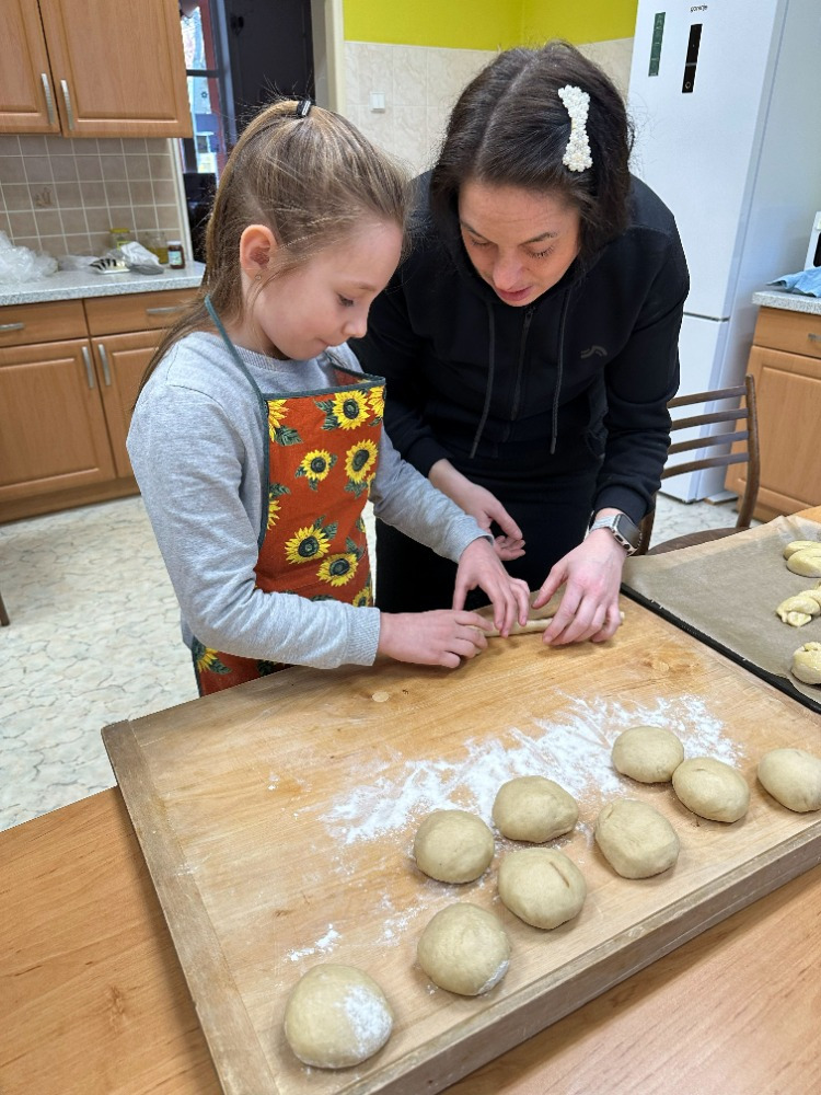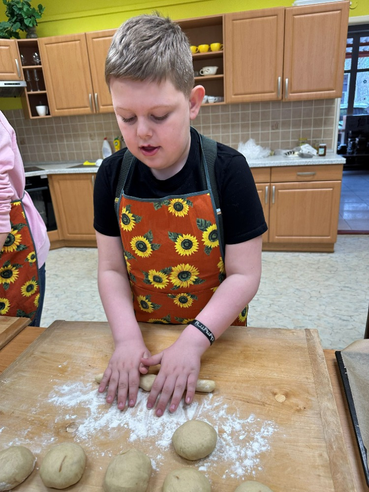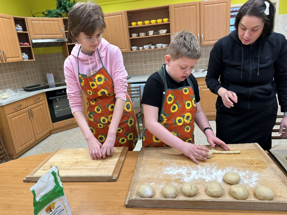 Velikonoční tvoření jsme si letos opravdu užili. Při tvorbě flipbooku jsme si připomněli velikonoční zvyky a tradice. Potom si děti s naší malou pomocí vyrobily veselé hlavičky z punčochy, kterým postupně vyrůstají „vlásky“ z osení. S nadšením také malovaly, vystřihovaly a skládaly barevné papírové slepičky. Na závěr jsme se pustili do pečení tradičních jidášů, které se všem moc povedly – a ještě lépe chutnaly. 😊