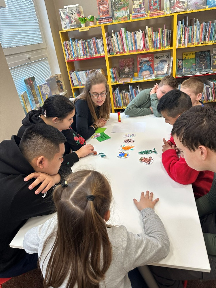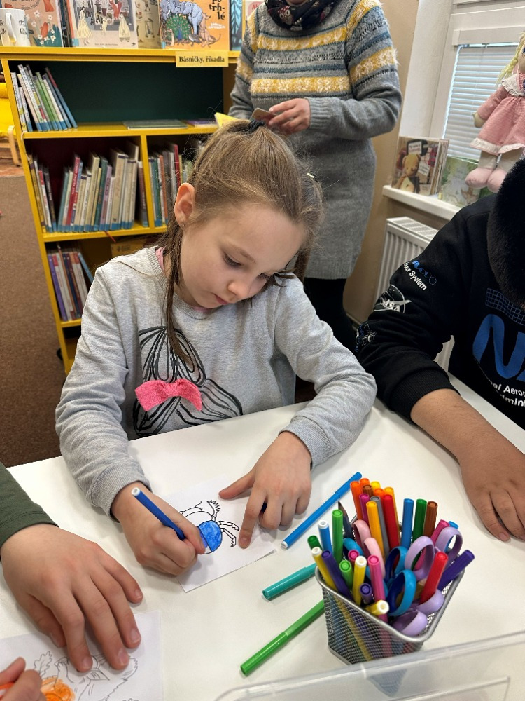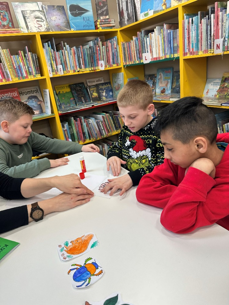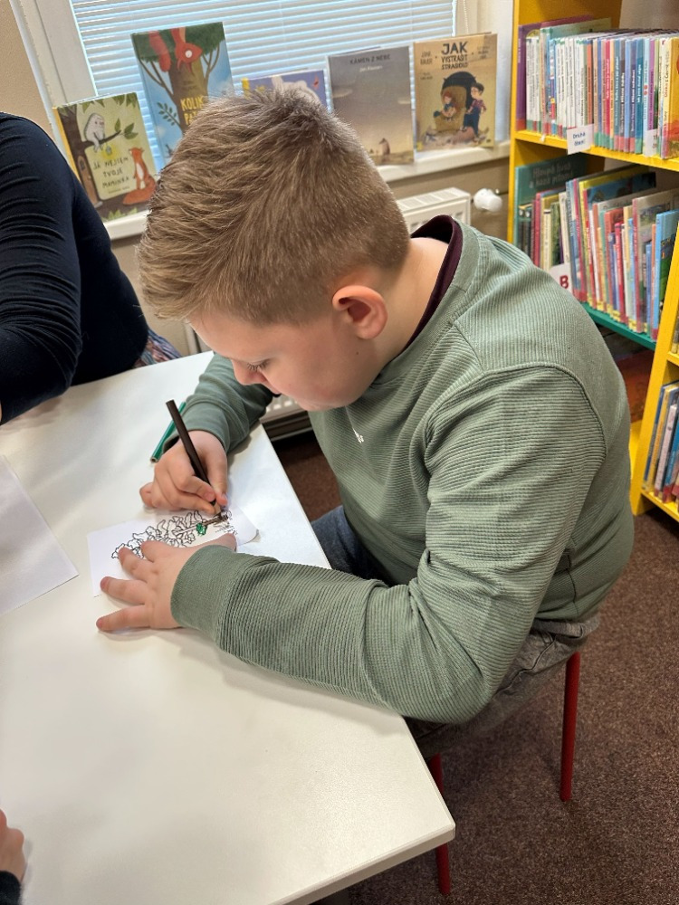 Při návštěvě knihovny si pro nás paní knihovnice připravila knížku „Kdysi jsem byla strom“, která dětem přiblížila cestu od malého semínka až po hotovou knihu. Děti příběh zaujal a s pomocí paní knihovnice si následně vytvořily vlastní malou obrázkovou knížku inspirovanou tímto vyprávěním. Společné dílko si nakonec také podepsaly a odnesly si tak krásnou vzpomínku na příjemně strávený čas v knihovně.