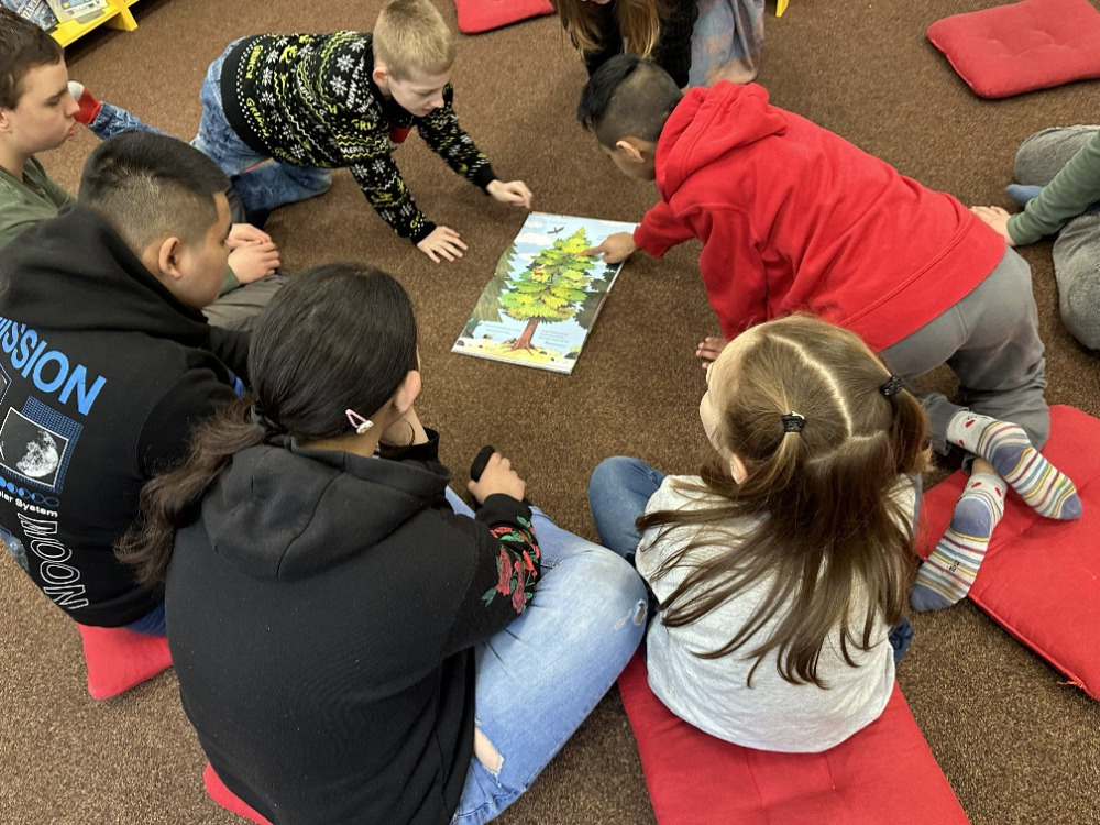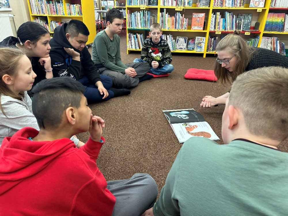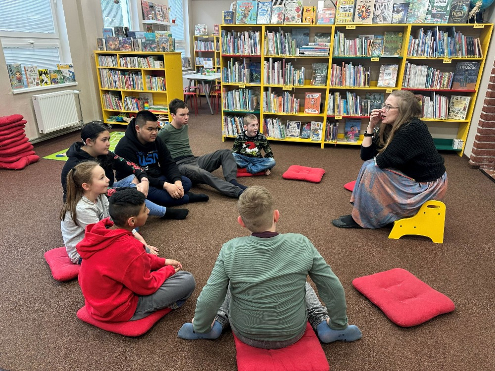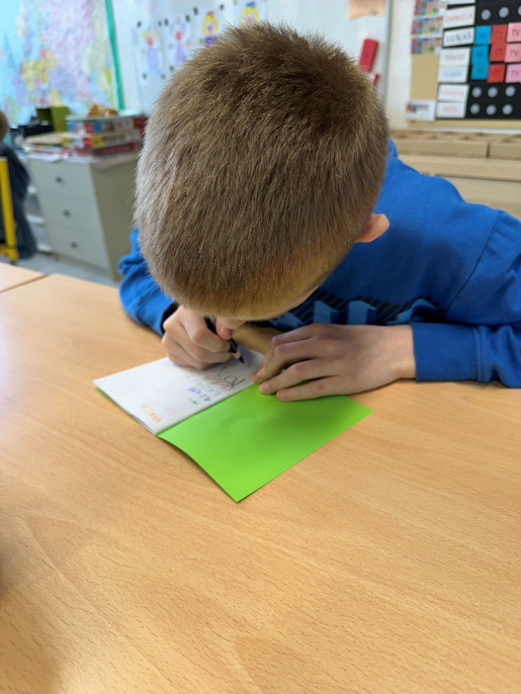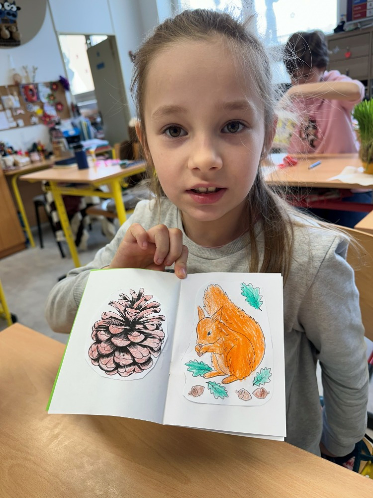 Při návštěvě knihovny si pro nás paní knihovnice připravila knížku „Kdysi jsem byla strom“, která dětem přiblížila cestu od malého semínka až po hotovou knihu. Děti příběh zaujal a s pomocí paní knihovnice si následně vytvořily vlastní malou obrázkovou knížku inspirovanou tímto vyprávěním. Společné dílko si nakonec také podepsaly a odnesly si tak krásnou vzpomínku na příjemně strávený čas v knihovně.
